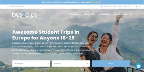 Bus2alps is the leading tour operator for 20somethings who want an authentic experience visiting europes top destinations.. Our mission has been to provide meaningful, impactful and empowering travel experiences to help students create lifelong friendships and memories.. Bus2alps offers tours and activities in various european destinations for students studying abroad.. If you have any questions, please reach out..